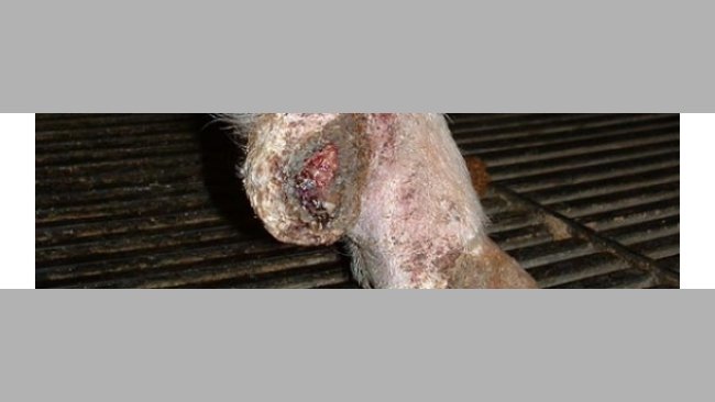 - Inflamação - A lesão pode ser leve (pododermatite superficial), com uma ligeira coxeira ou profunda, com a unha muito avermelhada no bordo,inchada à altura do mesmo e com dor. No caso de inflamação crónica, há um crescimento excessivo e acelerado do casco (porcas com "unha de drácula”). A lesão deve ser tratada no momento do seu aparecimento, para evitar que se torne crónica.