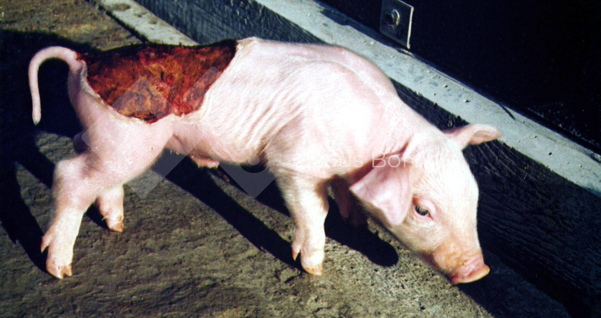 Trata-se da ausência de pele numa parte do dorso, do lombo e da perna, que corresponde a uma epiteliogénese imperfeita. Nesta patologia, o leitão nasce desprovisto de uma área da pele. No geral, produz-se nos membros ou flancos e costuma associar-se a animais individualmente (não a uma ninhada).