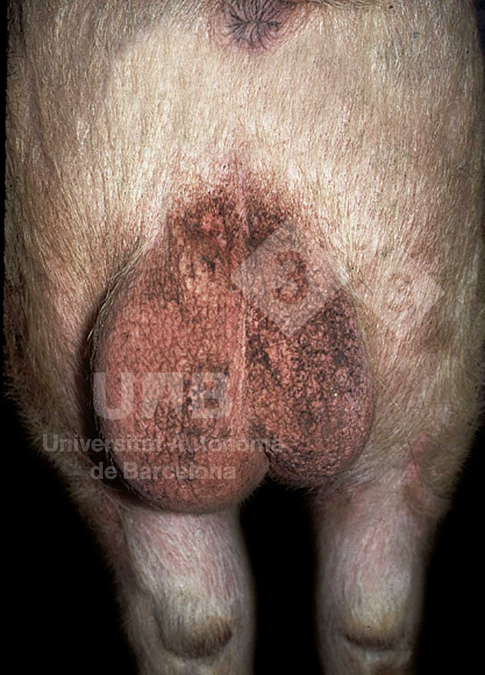 A infecção por Rubulavirus produz a doença do "olho azul". O vírus causa opacidade corneal nos porcos infectados, os leitões apresentam sinais nervosos e nas porcas falhas reprodutivas. Nos varrascos o vírus produz orquite unilateral, epididimite e atrofia testicular.