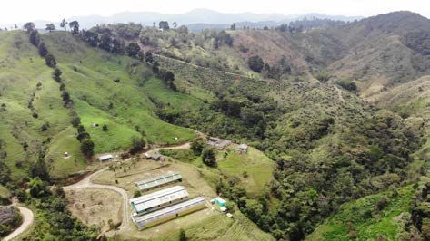 A localização da Bonita entre montanhas tropicais a 2000 m de altitude confere-lhe um elevado estatuto sanitário. Durante a visita contaram-nos como é a gestão da exploração e mostram-nos as instalações, com um curioso comedouro de fabrico próprio usado nas baterias.