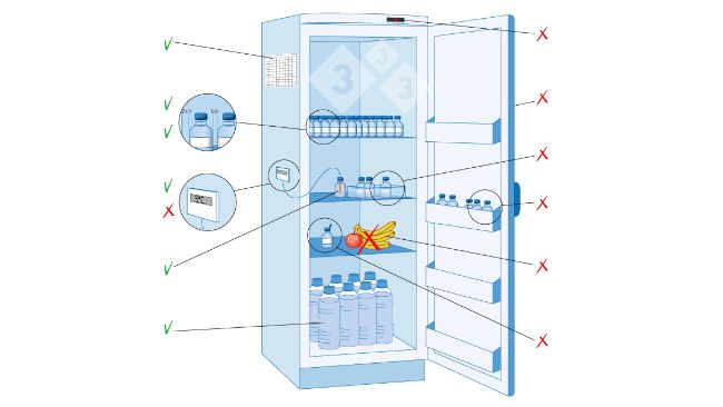 O que fazer e o que não fazer no armazenamento de vacinas no que diz respeito à localização, controlo térmico, manutenção e rastreabilidade.