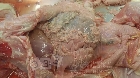 Nota-se um depósito branco na superfície mucosa da vulva de uma porca que foi coberta há 25 dias. Que é e qual é o seu significado?