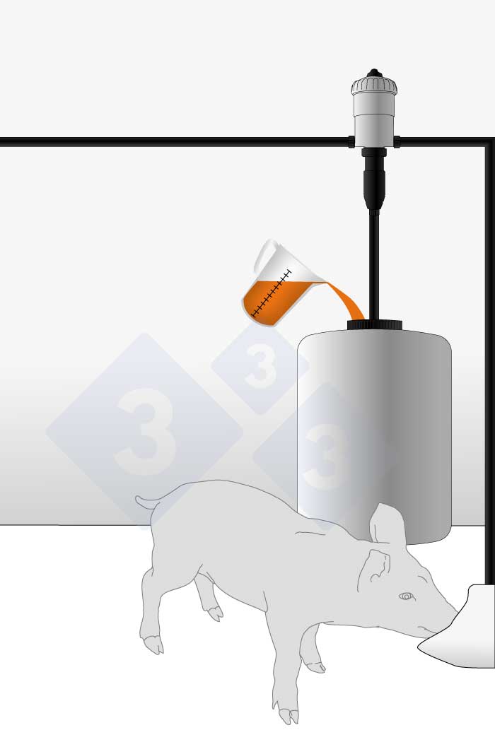 Para calcular a quantidade de solução deves inserir os teus dados nos campos correspondentes. Se não conheces a quantidade de água consumida, o simulador vai fornecer uma aproximação com base no número de animais, peso, temperatura e quantidade de água desperdiçada. No entanto sabendo a quantidade de solução consumida no primeiro dia de medicação podemos calcular o consumo real de água.
