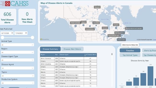 A ferramenta de alertas oferece um inventário acessível nacionalmente de alertas de doenças em saúde animal de todo o Canadá.